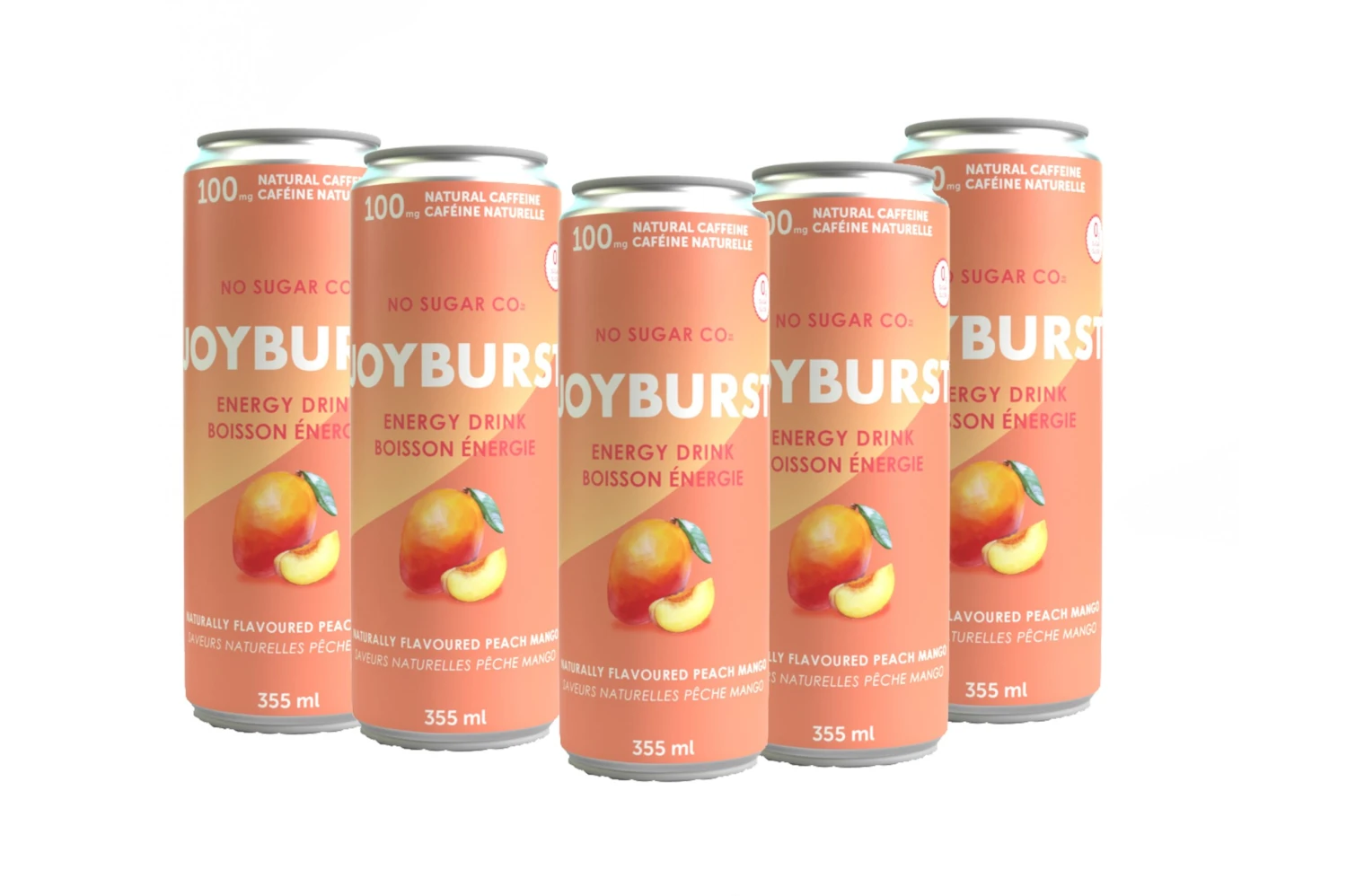 • (12) 12oz (355ml) Cans of No Sugar CO Joyburst Peach Mango Energy Drink